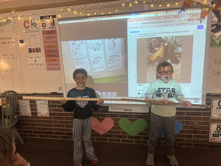 Students studied bats all week in first grade. The longest wingspan we measured was 80 inches! 🦇