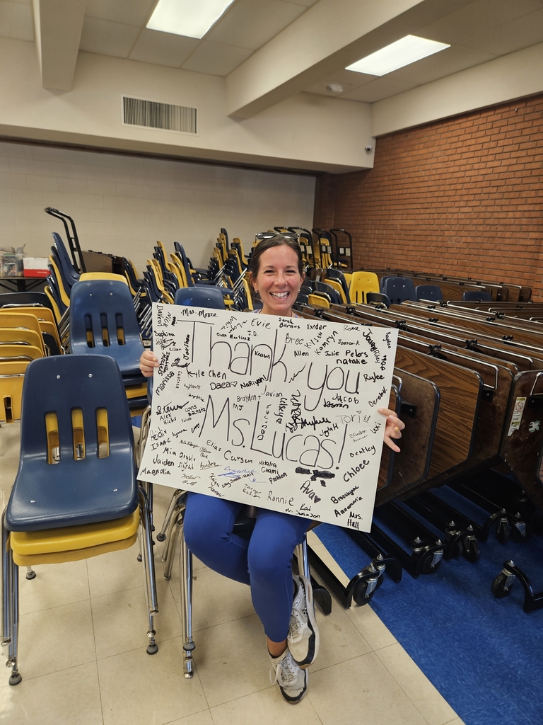 The sophomores thanked Ms. Lucas for organizing the school tailgate yesterday by all signing a poster for her. We appreciate everything you do for the school, Ms. Lucas!