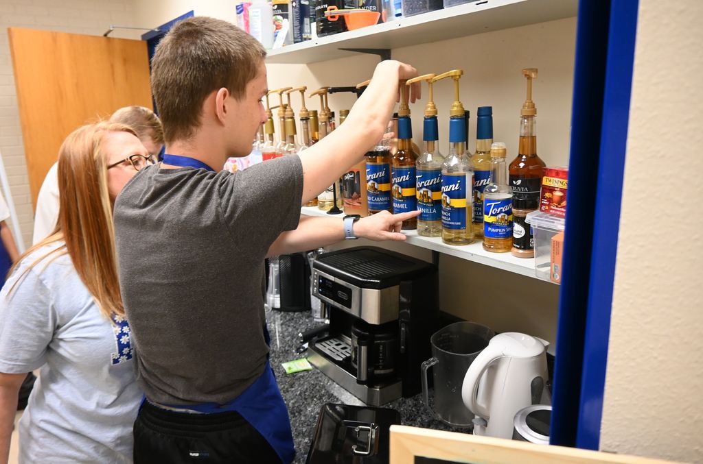 Tiffany McLean first hour students have been putting in the hard work to expand offerings at The Magic Bean coffee shop they operate by the PHS Library, and meet the growing demand of customers. Friday they offered free taste testing of one of their new Italian sodas. McClean's students garner life and employability skills working in the shop. They pitch ideas of what to offer, and assist with inventory and purchasing, making drinks, delivering to customers in their first hour, and also learn about money. During first hour students and staff can order hot or cold plain or flavored coffees, lattes, teas or Italian sodas. In addition, McClean's students will also soon be selling holiday craft items they have been making in other classes. Proceeds from the store help pay for McClean's students to take field trips.