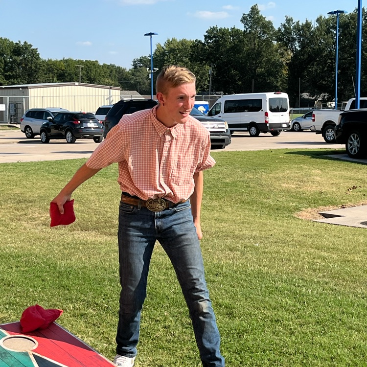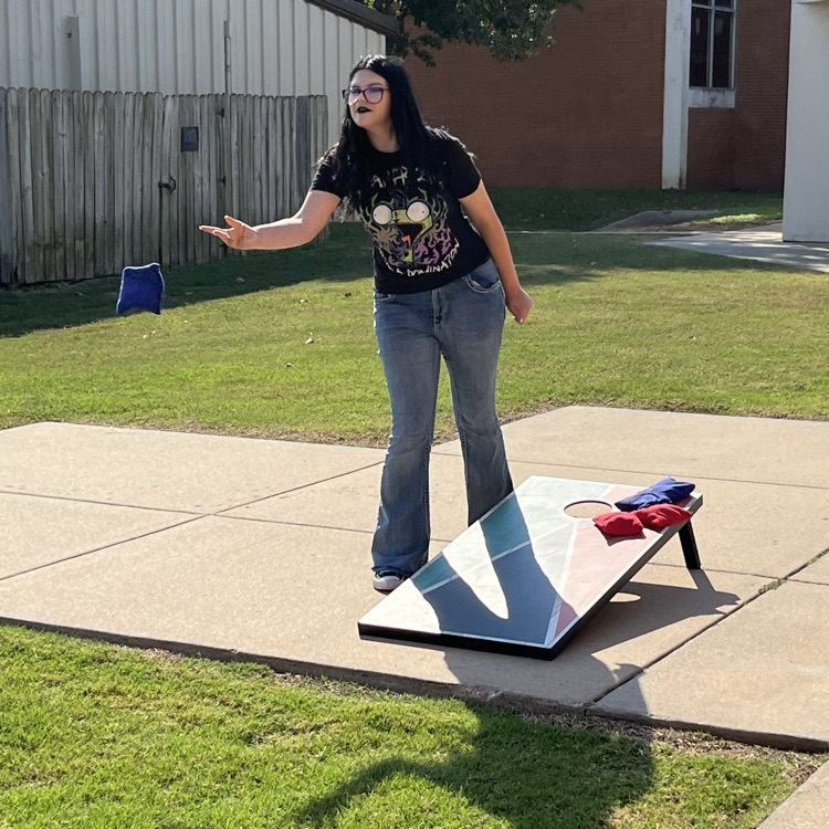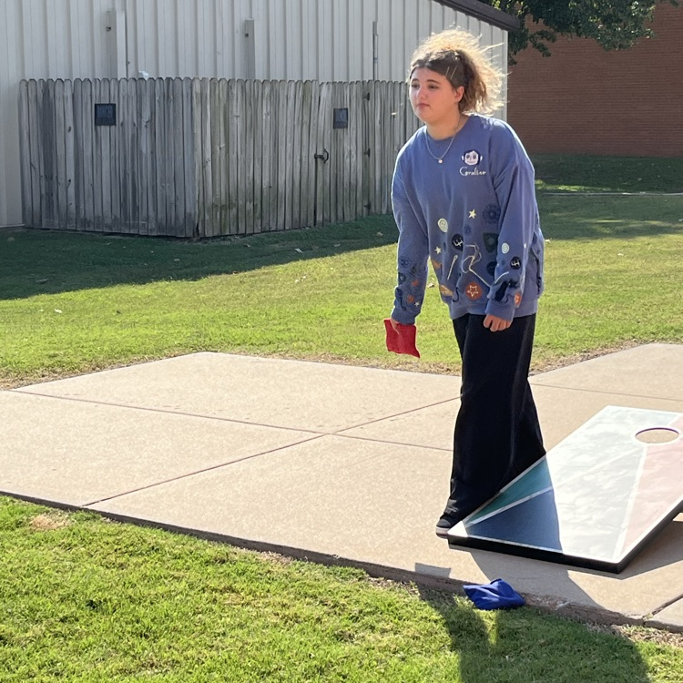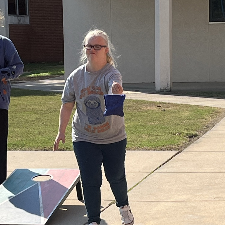 Parsons High School Viking coalition chapter practiced cornhole for an upcoming Special Olympics tournament.